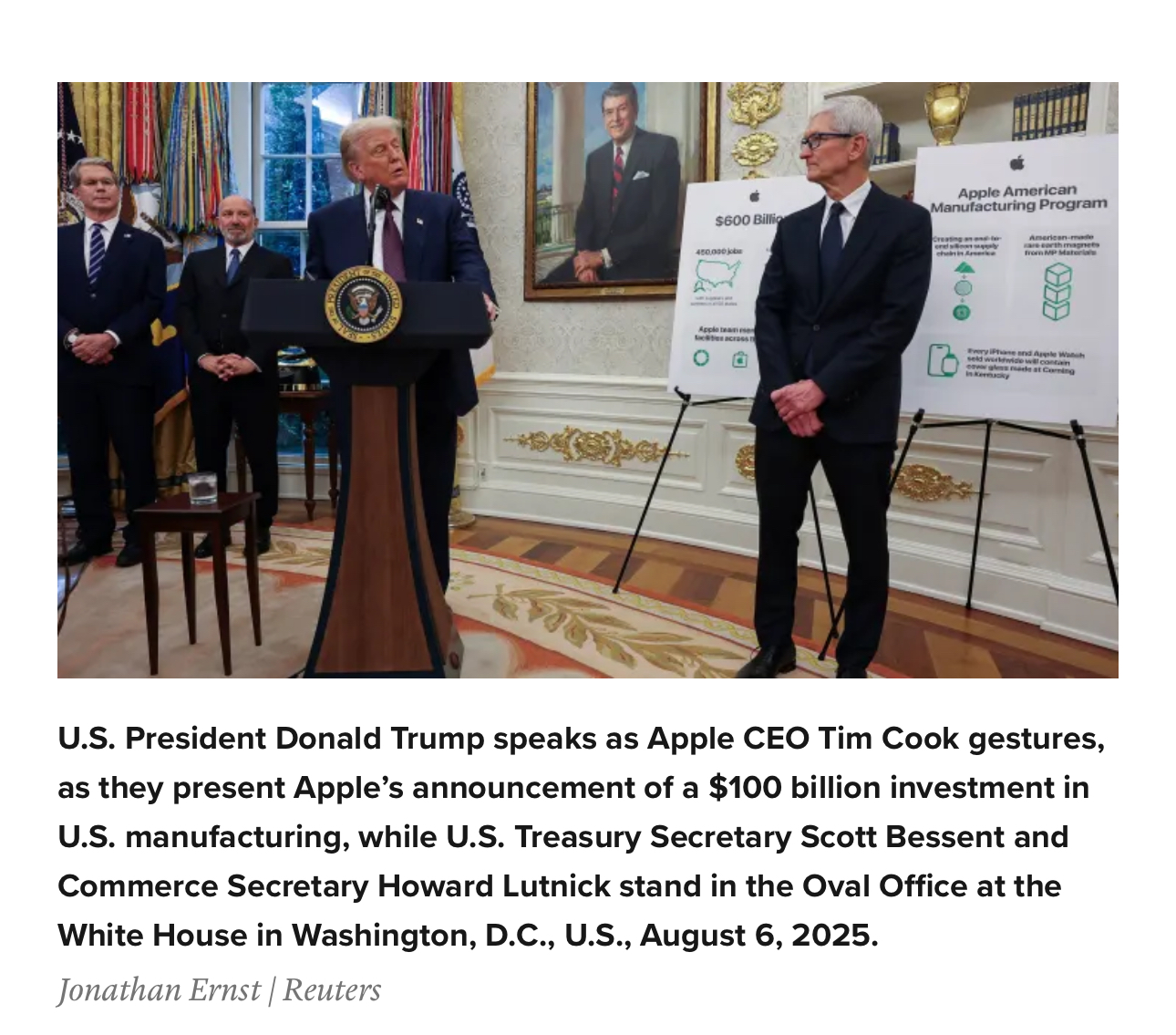 이상으로 오늫 글은 이만 마치며, 마무리짤은 팀쿡 횽아입니다. 켄터키에 코닝과 함께 아이폰 제조공장 투자에 대한 발표를 밤사이 도람프 할배와 같이 발표 하는짤입니다.
