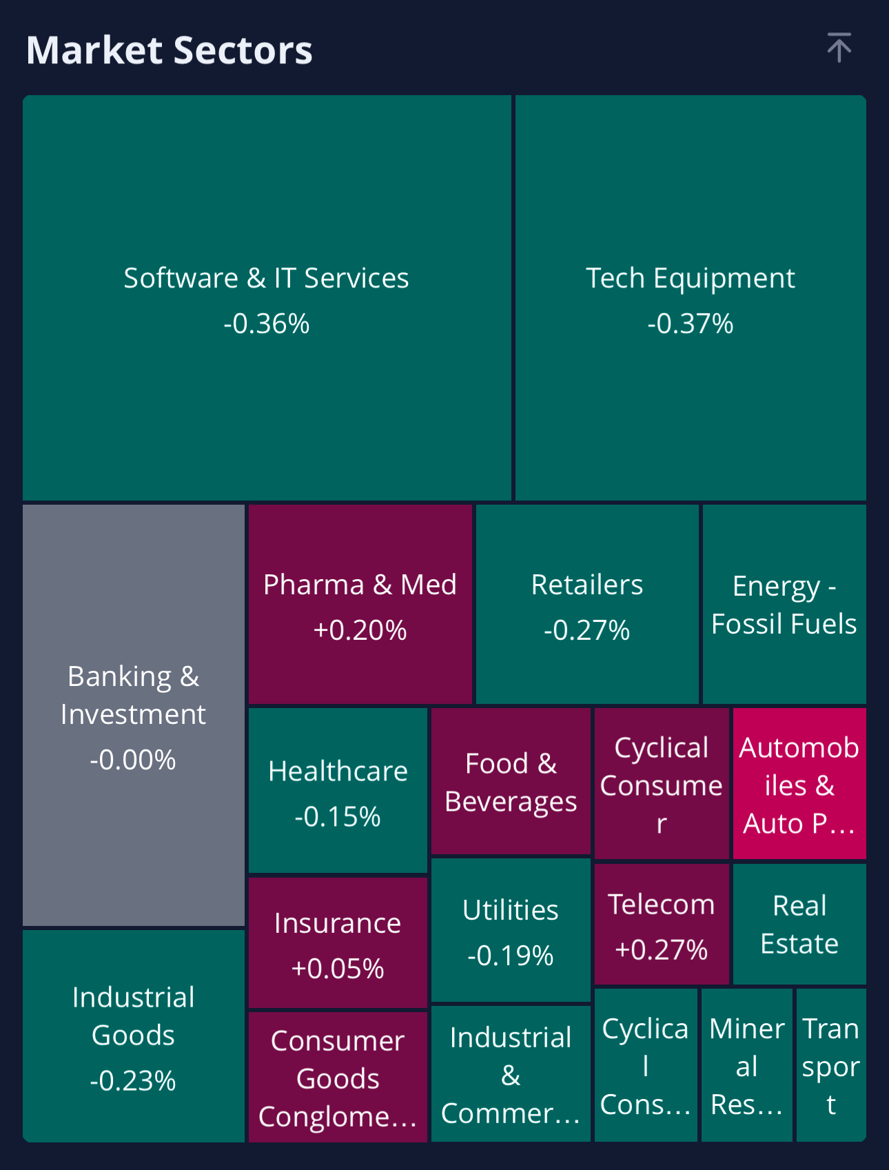 전체 섹터들 증 상승 보다 하락한 섹터들이 더 많습니다. 그나마 자동차 섹터는 강세입니다.