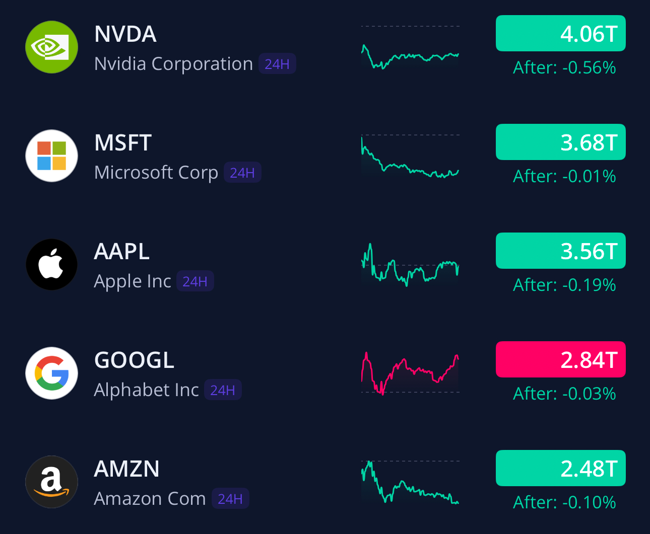 시총 빅5는 구글을 제외하고 모두 하락입니다.