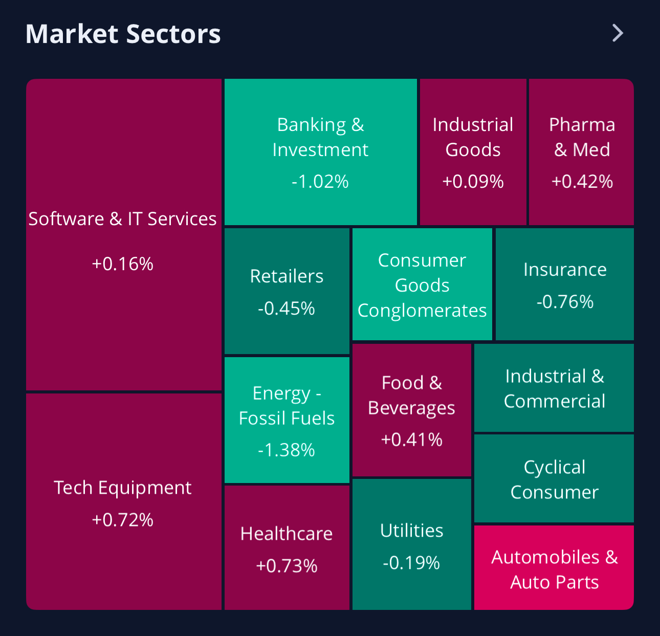 전체 섹터들중 상승 보다 하락이 더 많았습니다.