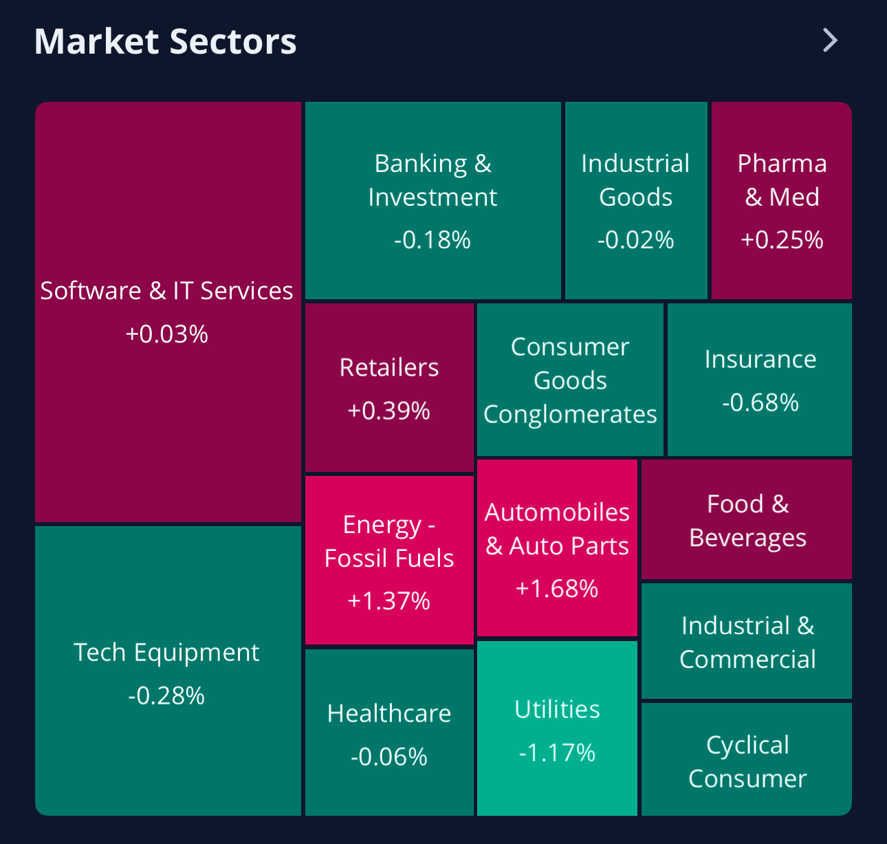 전체 섹터들중 상승 보다 하락한 섹터들이 더 많습니다.
