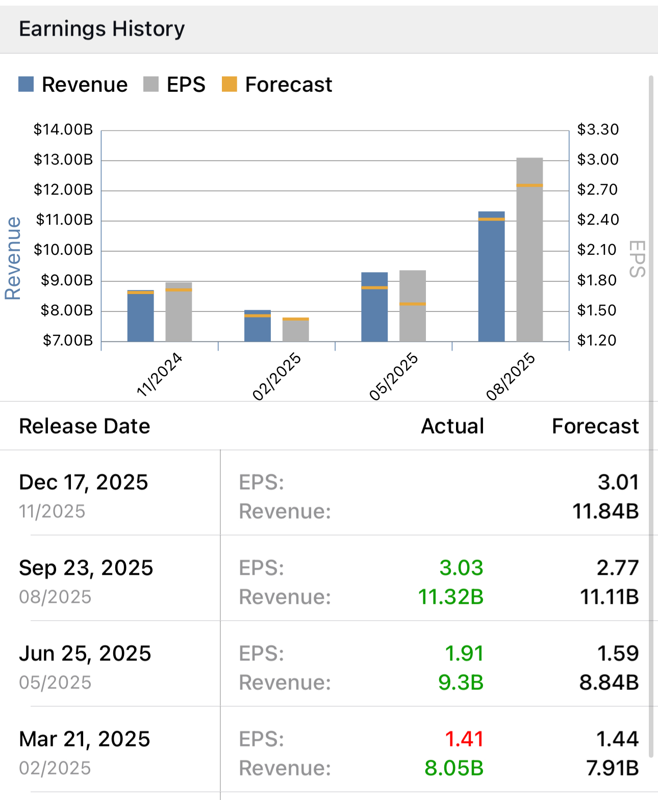 장마감후 발표한 분기 실적이 예상보다 모두 높게 나왔습니다. 분기 매출 113.2억 달러에 주당 순이익 3.03불입니다. 다음 분기 매출 가이던스도 125억 달러를 전망 하고 있습니다.