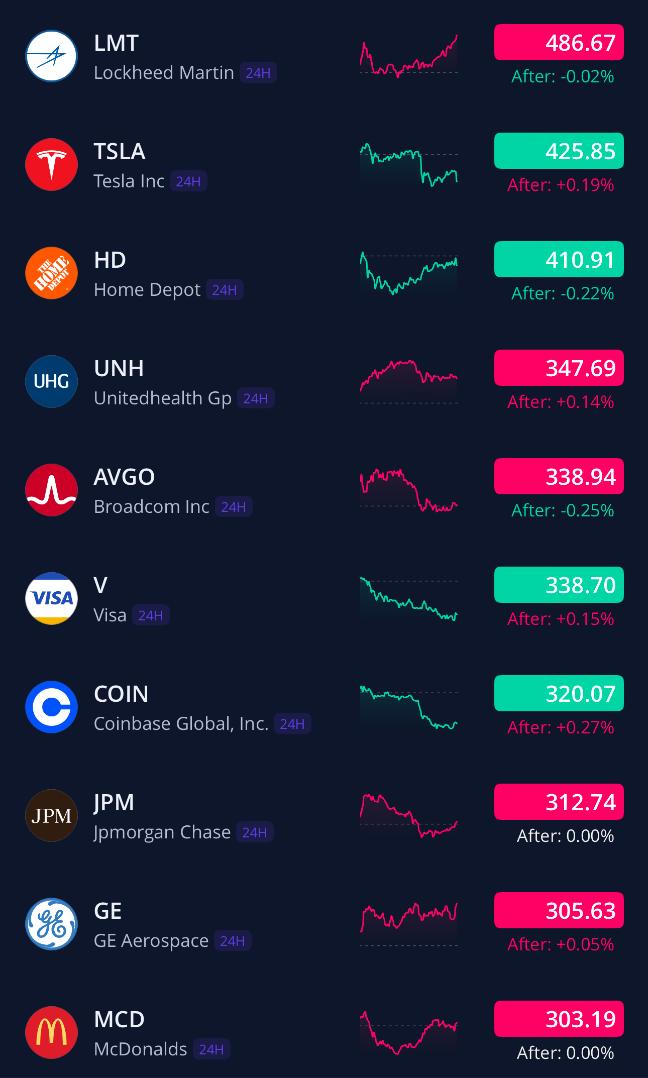 관심 종목들 중 일별 주가 상승률 Top5 는 아래와 같습니다. 반도체 기업들이 2개나 랭크인입니다. 팔란티어는 2일 연속 상승이네요.