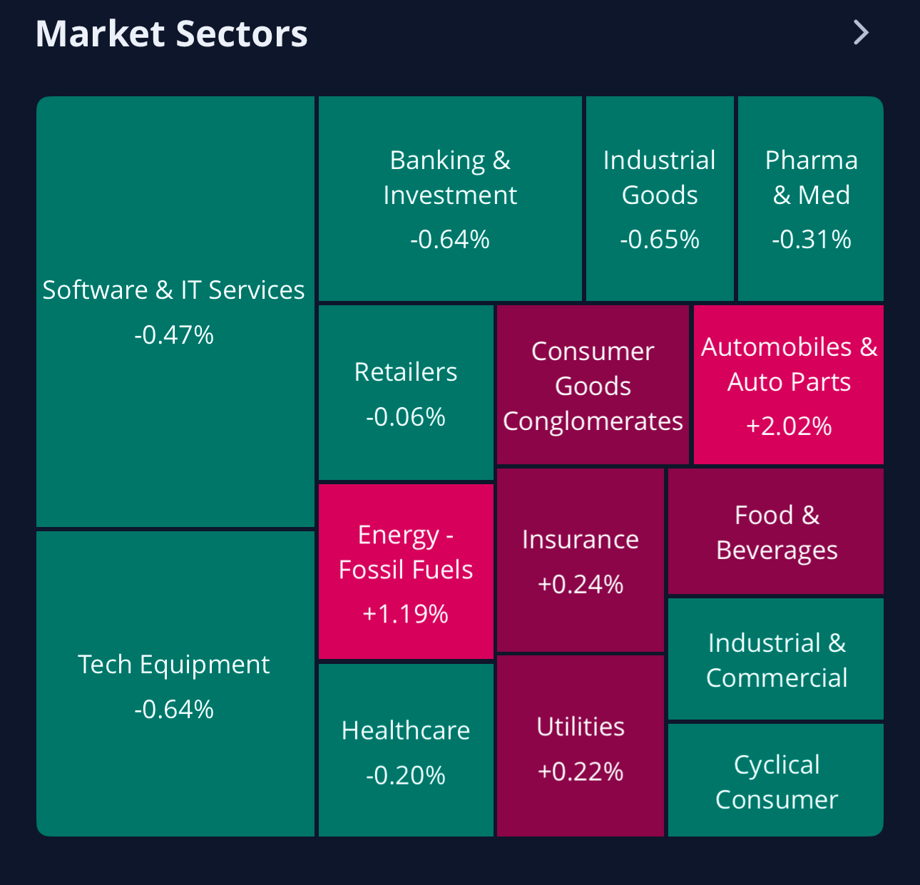 전체 섹터들중 상승 보다 하락한 섹터들이 더 많네요. 에너지 섹터는 2일째 상승이며, 자동차 섹터도 2% 강세입니다.